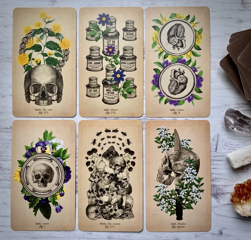 In the accompanying guidebook, Goodchild provides insightful descriptions of the meaning of every card. With beautifully styled photography and accessible text, she explains how to set up different types of readings—including Celtic Cross and Moon Cycle spreads—and clearly outlines the numerological, elemental, and astrological associations of the cards (powerful information to have at your fingertips when you are doing readings). Thoughtfully and beautifully conceived, The Antique Anatomy Tarot is an inspiring tool for spiritual and personal development.