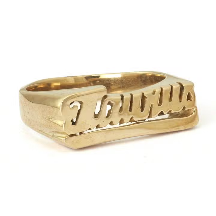 Brass rings are uncoated, allowing for customer re-polishing. Avoiding water, heavy lotions, chlorine, etc., will prolong the original polished shine. Cleaning the ring with a jewelry polishing cloth will restore shine if tarnish occurs.