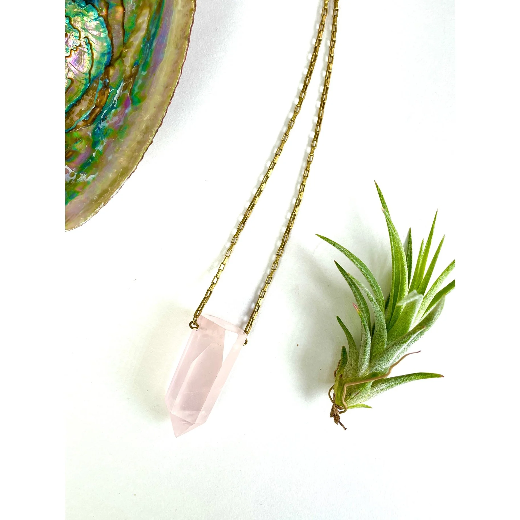 Genuine rose quartz Crystal point pendant on solid brass chain. These are natural stones and may vary in size and color from the picture.