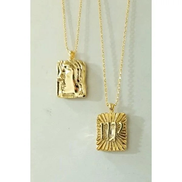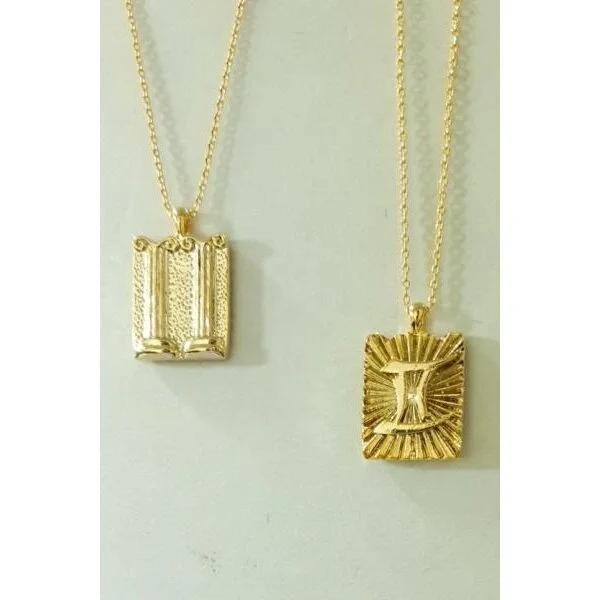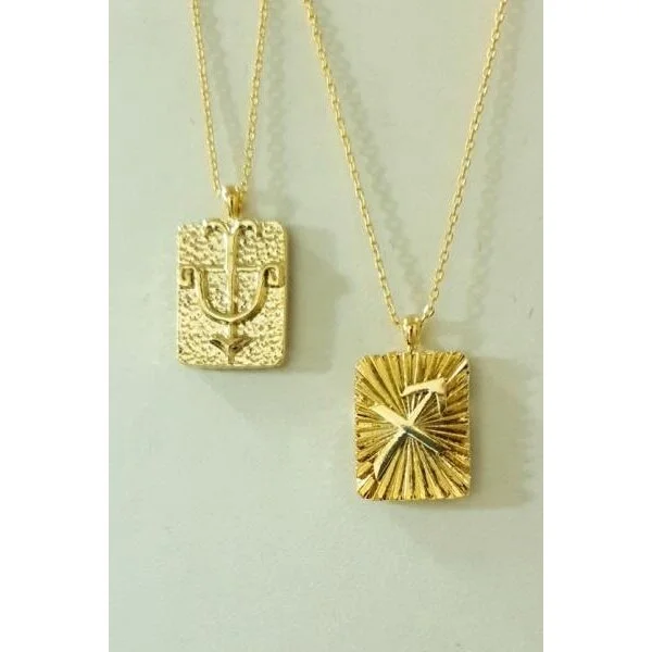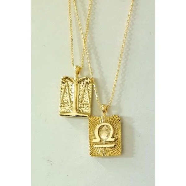 Shop › Reversible Zodiac Necklace Image 1 of 13 Image 2 of 13 Image 3 of 13 Image 4 of 13 Image 5 of 13 Image 6 of 13 Image 7 of 13 Image 8 of 13 Image 9 of 13 Image 10 of 13 Image 11 of 13 Image 12 of 13 Image 13 of 13 Reversible Zodiac Necklace $27.00 Gold Dipped Brass Necklace Color: Scorpio Taurus Sagitarrius Virgo Pisces Gemini Capricorn Cancer Aquarius Leo Aries Libra Get notified by email when this product is in stock. Quantity: Add To Cart Added! Gold Dipped Brass Necklace